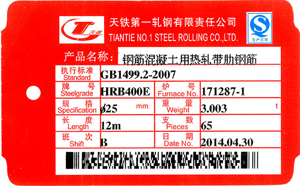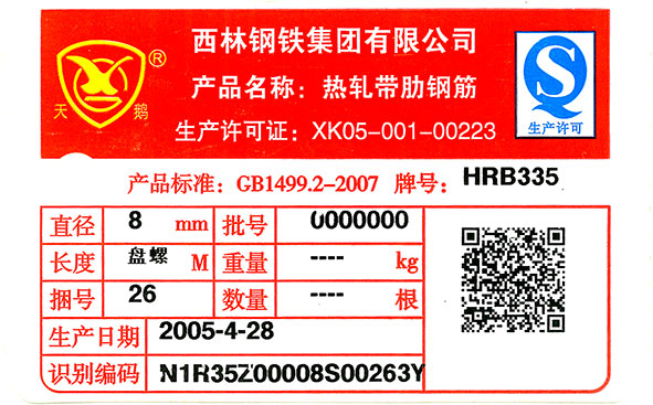 在钢铁生产过程中,产品包装中的标示标牌代表着产品分类和企业形象。针对钢铁生产节奏要求,常温条件下使用的标签和标牌难于满足实际的需求,因此我公司针对冶金行业(特别是轧钢生产企业)研发生产出了各种规格的耐高温不干胶标签和吊牌,并且可以根据客户的需求定制,最高耐温400度以上。目前已在国内大型钢铁厂使用。 专用耐高温碳带,防止打印到标示上的字迹因温度过高掉色,配合专用打印机使用,使得打印出的标示清晰、耐高温。产品样式如图: